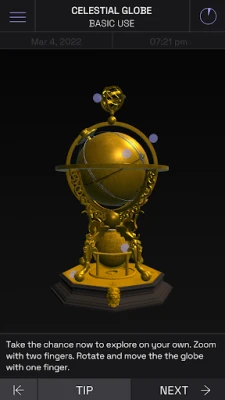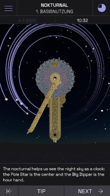 You'll learn how to use these historical instruments (a nocturnal, a sundial, a celestial globe, and an astrolabe) and be able to apply them in the real sky — right now, wherever you are. You can make use of 20 guided units or set out on your own in the new Exploration Mode. While you're exploring, you'll also come to see how the movements of the heavens arise: of the Sun, the Moon, and the stars.