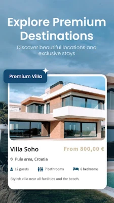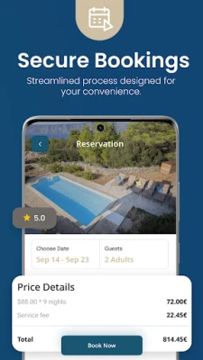 Effortless Booking: Navigate through an intuitive interface to find and reserve your perfect holiday retreat with just a few taps.